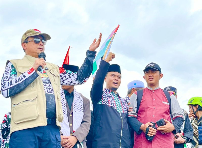 Andi Muhammad Nur Syahid, yang berada di atas mobil tronton yang digunakan sebagai kendaraan komando sekaligus panggung orasi, juga sempat menyampaikam orasi kecamannya terhadap genosida yang dilakukan penjajah Israel terhadap rakyat Palestina hingga saat ini.