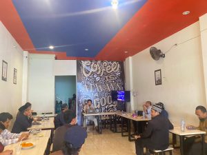 Suasana diskusi tentang lembaga pendidikan Islam di Warkop Kolaborasi, Jumat (14/7/2023).